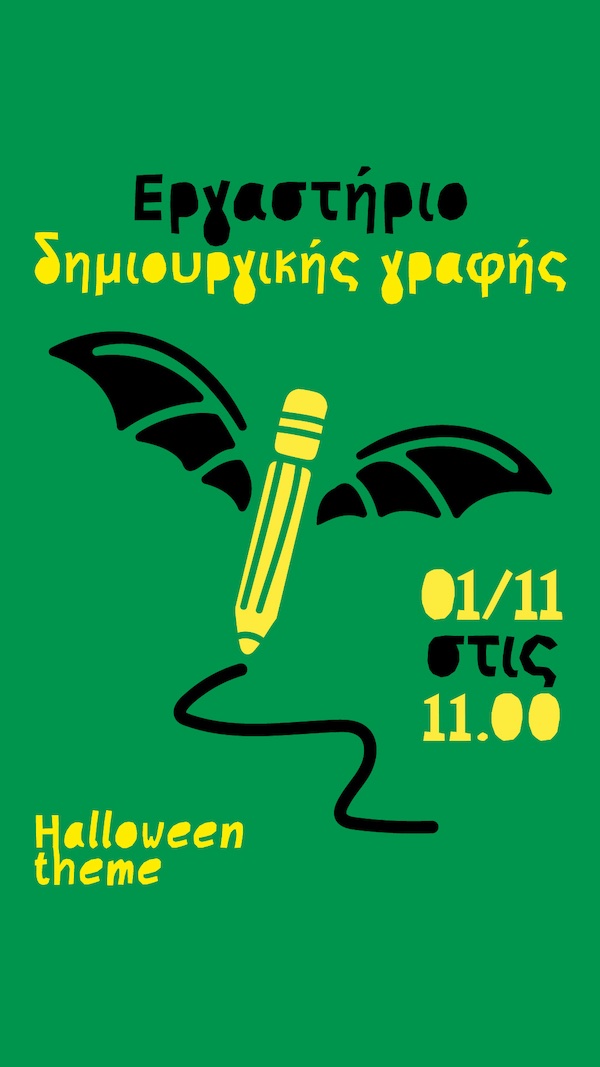 Το Σάββατο 1 Νοεμβρίου στις 11.00 στο DADOO γιορτάζουμε το Χάλογουιν με ένα εργαστήριο δημιουργικής γραφής για παιδιά ηλικίας από 8 ετών. Μπουαχαχαχα!!
