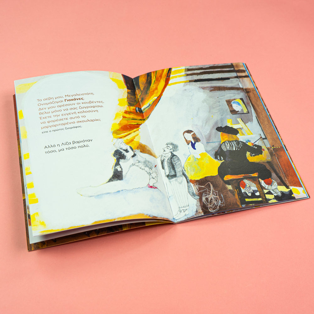 Επτά σπουδαίοι ζωγράφοι, μία αγέλαστη πριγκίπισσα, ένα αινιγματικό χαμόγελο και πολλή φαντασία! Όλα σε ένα παραμύθι που προσπαθεί να λύσει το μυστήριο του πιο διάσημου πορτρέτου στην Ιστορία της Τέχνης: της Λίζας ή αλλιώς της Μόνα Λίζα, αλλά και να γνωρίσει με χιούμορ στους μικρούς αναγνώστες τον κόσμο των χρωμάτων και της ζωγραφικής μέσα από το έργο και τις τεχνικές μερικών από τους διασημότερους δημιουργούς.