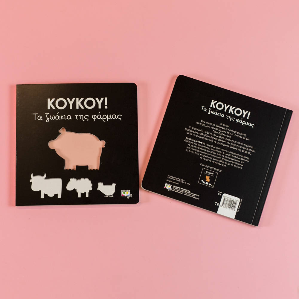 Κούκου! Έχω ουρίτσα όμορφη και στριφογυριστή, τα πάχη μου, τα κάλλη μου λέω σ’ όποιον με δει. Ποιο ζωάκι είμαι; Το χαριτωμένο κείμενο, σε μορφή αινιγμάτων, και το κομμένο περίγραμμα κάθε ζώου θα κεντρίσουν την περιέργεια του παιδιού, ώστε να ανακαλύψει όλα τα αγαπημένα ζωάκια της φάρμας. Σημείωση εκδότη: Το παιχνίδι με αινίγματα καλλιεργεί τις γλωσσικές δεξιότητες και την αντίληψη του κόσμου. Τα μικρά παιδιά μαθαίνουν τα χαρακτηριστικά των ζώων, πώς να τα περιγράφουν και πώς να οργανώνουν τον λόγο τους. Επίσης αναπτύσσουν τη λεπτή τους κινητικότητα, ακολουθώντας με το δάχτυλο τα κομμένα περιγράμματα.