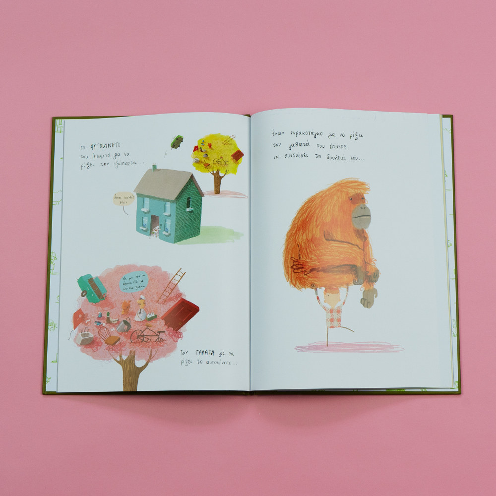 Όμως τα πράγματα έγιναν πολύ χειρότερα όταν πέταξε ένα παπούτσι για να ρίξει το χαρταετό και -ΟΥΠΣ!- σκάλωσε κι αυτό. Ακολούθησε μια σκάλα, ένας κουβάς με μπογιά, ένας νεροχύτης, ένας ουρακοτάγκος, μια φάλαινα…
