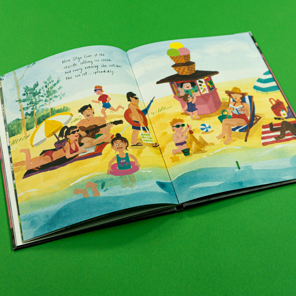 Imagine living and working every day in the same small kiosk. For years, the kiosk has been Olga’s life. She spends her days inside reading travel magazines and dreaming of escaping to distant places. One day a chance occurrence turns her upside down—literally—and sets her off on an unexpected journey.