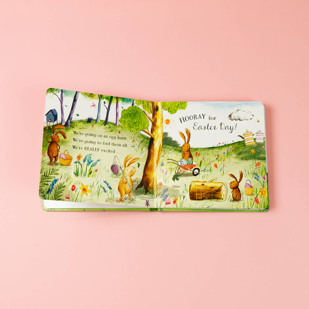 Join a family of bunnies as they set off on an exciting lift-the-flap Easter egg hunt. There are ten eggs to find and count–but watch out for the obstacles along the way . . . Lambs, chicks, bees, and ducks await, and there’s even a wolfish surprise, so be careful!